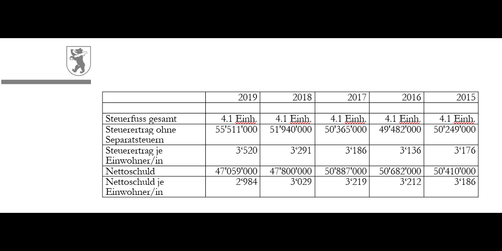 Die Erfolgsrechnung 2019 schliesst bei einem Gesamtertrag von 99,3 Mio. Franken und einem Gesamtaufwand von 96 Mio. Franken mit einem Überschuss von 3,3 Mio. Franken ab. Budgetiert hatte die Gemeinde einen Verlust von 1,9 Mio. Franken.