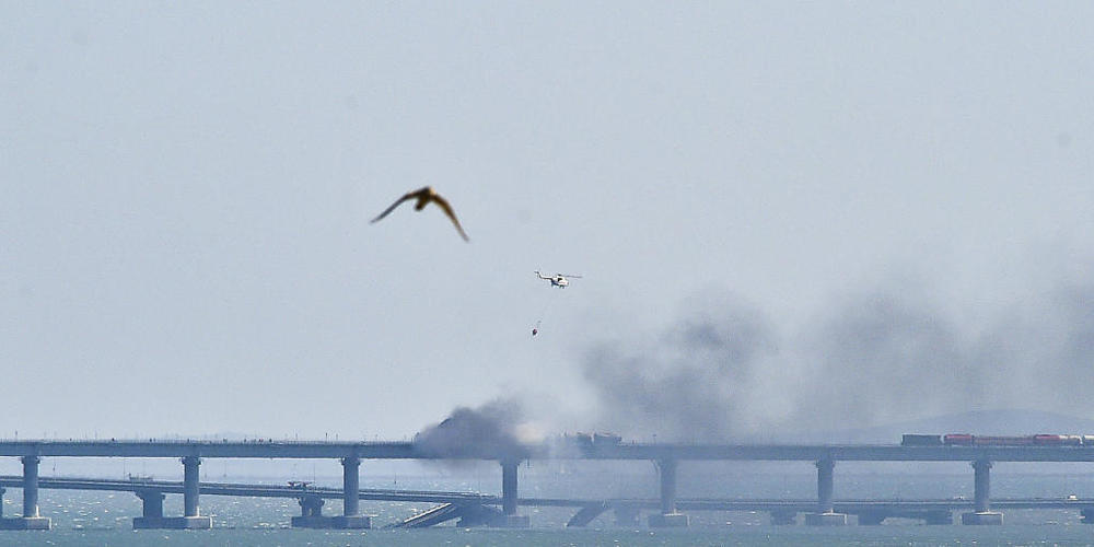 Die für Russland strategisch und symbolisch wichtige Krim-Brücke war einige Stunden zuvor von einer schweren Explosion erschüttert worden, Videos zeigen grosse Zerstörungen. Die genauen Hintergründe sind noch unklar. Russischen Angaben zufolge ist ein Lastwagen explodiert. Ukrainische Medien hingegen berichteten unter Berufung auf Sicherheitskreise in Kiew, dass der Geheimdienst SBU hinter der Spezialoperation stecke.