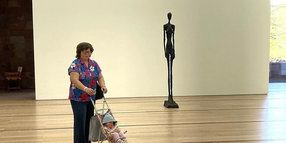 Aber wirklich faszinierend sind die Szenerien respektive Figuren, die sich erst auf den zweiten Blick als Skulpturen entpuppen. So etwa die vollschlanke Mutter, die ihr Kind im Kinderwagen zwischen den hyperschlanken Giacometti-Figuren durchschleust. Oder das ermüdete ältere Paar auf einer Bank im Raum mit den entspannenden Rothko-Werken.