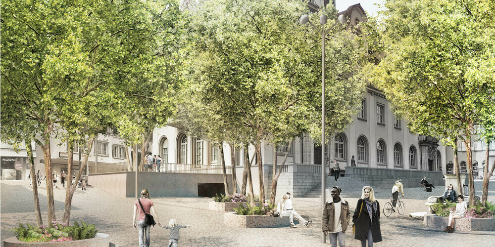 Die Tiefgarage zwischen UBS und Regierungsgebäude bleibt erhalten, wird jedoch eine zugänglichere Einfahrt bekommen, die unter der Terrasse an gleicher Stelle wie die heutige liegen wird. Der Aufgang aus der Tiefgarage wird neu direkt auf dem Platz sein und nicht wie heute über Umwege im Einkaufszentrum. «Mit dieser Lösung ist jeder direkt dort, wo er hinwill und kann sich orientieren», erklärt Buchs. Beide Geschosse der Garage werden behindertengerecht über einen Liftzugang erreichbar.
