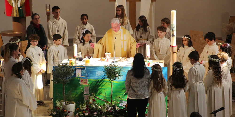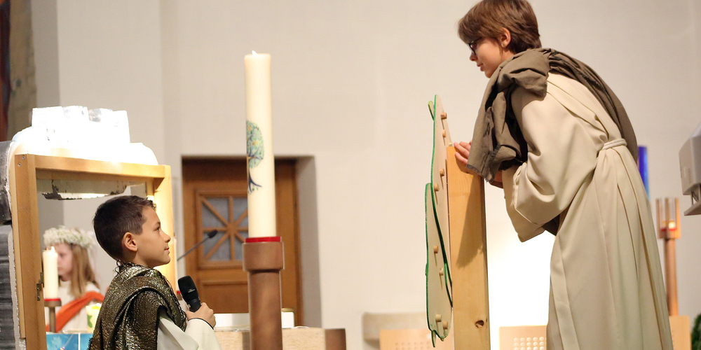 Unter Orgelklängen zogen sie in die festlich geschmückte Kirche ein. Der Gottesdienst wurde zu einem grossen Teil von den Kindern selbst mitgestaltet. Voller Freude sangen sie, sprachen Gebete und trugen ihre selbst geschriebenen Fürbitten vor. Die Geschichte des Zöllners Zachäus spielten sie eindrücklich vor.