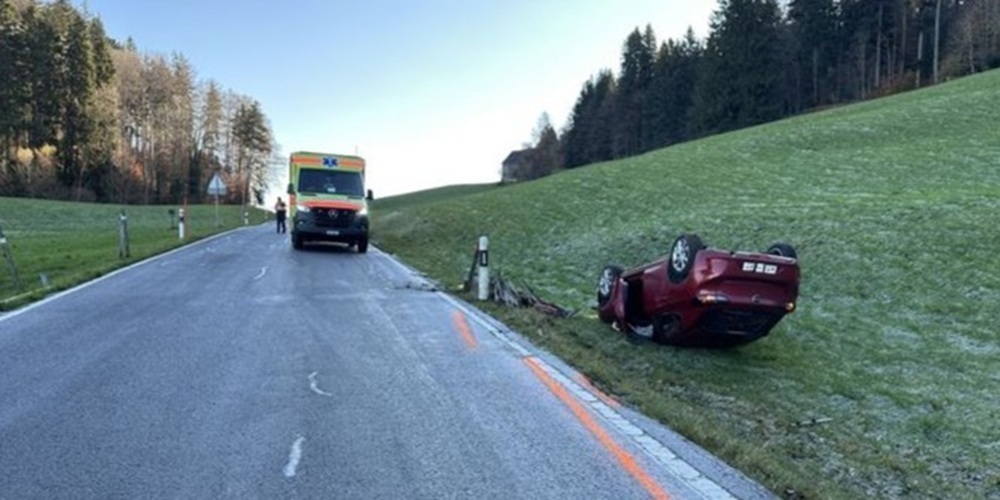 Am Samstag, 8. November 2025, ist es in Schachen bei Herisau zu einem Selbstunfall mit einem Auto gekommen. Zwei Personen verletzten sich dabei leicht. Es entstand Sachschaden.