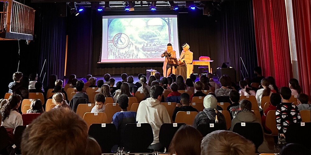 Unter dem Motto «Lindbergh – Die abenteuerliche Geschichte einer fliegenden Maus» von Torben Kuhlmann erlebten die Kinder eine spannende Reise durch Zeit und Raum. Besonders hervorzuheben ist der Auftritt des Schauspielers Philipp Langenegger, der in die Rolle des Lindbergh schlüpfte und mit seiner Kunst die Fantasie der Kinder beflügelte. Unterstützt wurde die Aufführung in der Stuhlfabrik von den Lehrerinnen Claudia Bischofberger und Sandra Bruderer, die für den lebendigen Einstieg in das Thema verantwortlich waren.