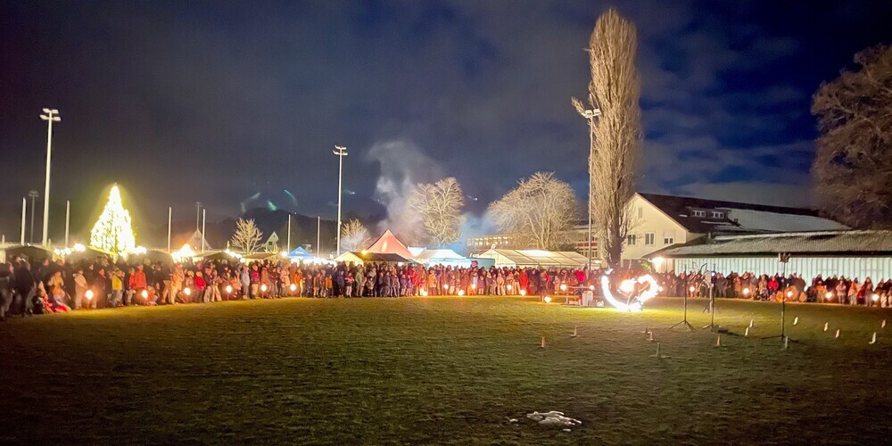 Nach einem noch eher ruhigen Auftakt am Samstagmittag zeigte sich der Christchindlimarkt am Abend von seiner schönsten Seite: Mit warmen Lichtern, liebevoll geschmückten «Holzhöttli», viel Betrieb und einer festlichen Stimmung lockte das Weihnachtsdorf auf dem Ebnet und in der Windegg zahlreiche Besucherinnen und Besucher an. Viele genossen die märchenhafte Atmosphäre bei einem Glühwein oder feinem Essen und schlenderten gemütlich durch die Marktstände. Um 18:30 Uhr startete die Feuershow, die für viel Begeisterung sorgte.