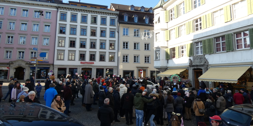 Das herrliche Wetter lockte am Mittwoch, 31. Dezember 2025, unzählige Besucherinnen und Besucher ins Zentrum von Herisau: Touristinnen und Touristen, Menschen aus der Region, aber auch viele ehemalige Herisauerinnen und Herisauer, die an diesem Tag die alte Heimat besuchten. Als gegen Mittag die ersten Schuppel im Dorfzentrum eintrafen, wurden sie von einer riesigen Menschenmenge empfangen.