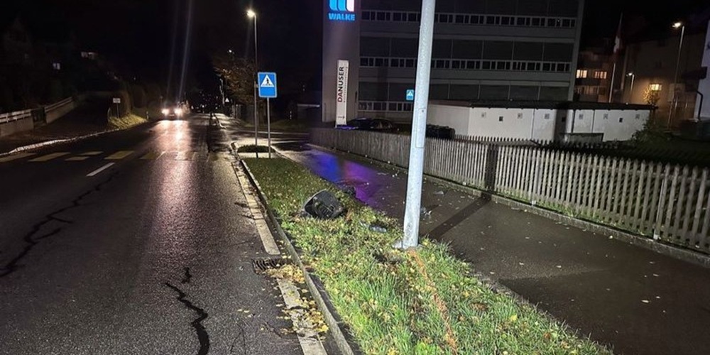 Ein 19-jähriger Mann lenkte kurz vor 20:00 Uhr sein Fahrzeug in Herisau von der Waldeggstrasse in die Kasernenstrasse und beabsichtigte, Richtung St. Gallen zu fahren. Beim Einfahren in die Kasernenstrasse verlor er die Kontrolle über seinen Personenwagen. Dabei prallte er mit dem Heck des Fahrzeuges zuerst an den rechtsseitigen Randstein, bevor er dann mit einem Strassenkandelaber kollidierte.