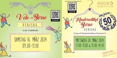 Am Samstag, 16. März 2024, veranstaltet der Verein Gemeinnützige Börsen Herisau die Velo-Börse in der Chälblihalle. Am Mittwoch, 20. März, findet die Kinderartikelbörse im evangeli...